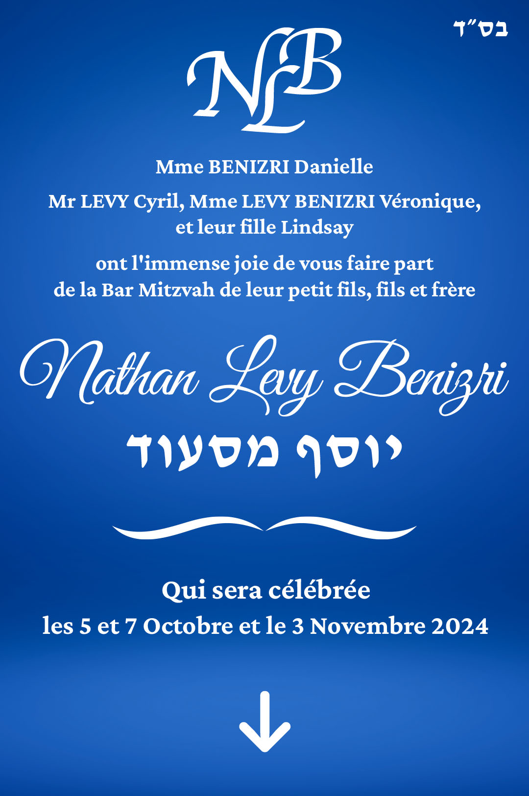 Nous comptons sur chacun de vous pour partager notre joie lors de la réception duDimanche 3 novembre 2024à partir de 12h au Salons Astoria1 Avenue du Maréchal juin91300 Massy